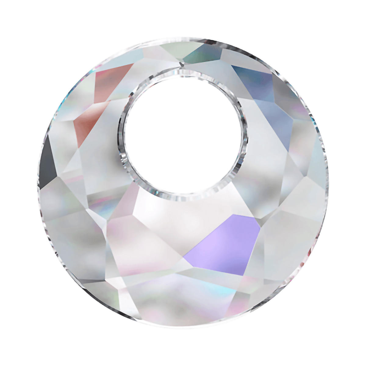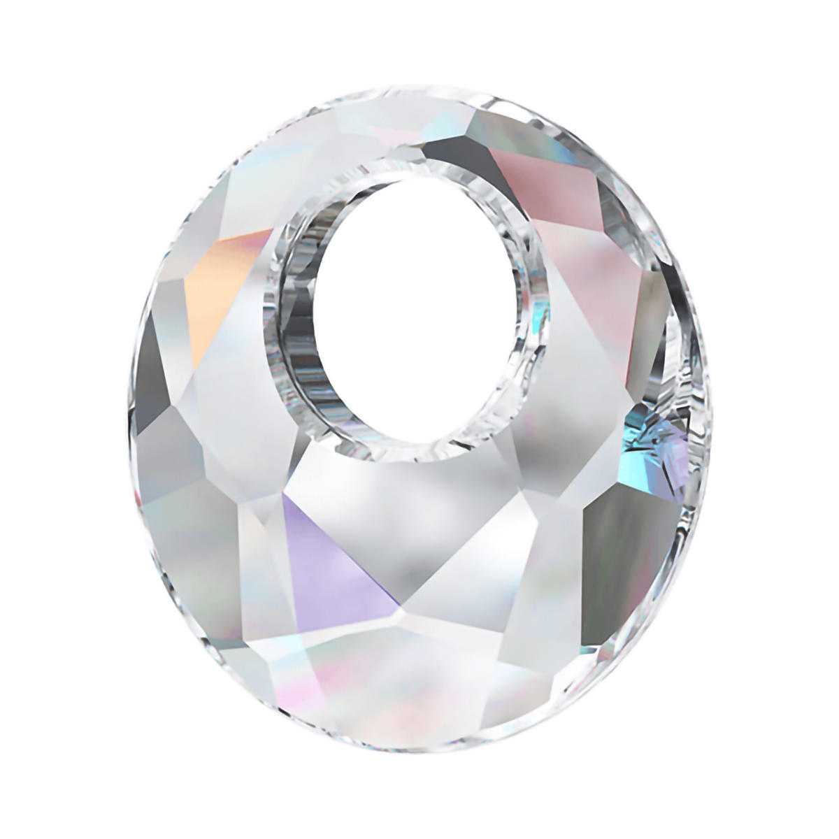 На кристалл нанесен один из самых популярных эффектов - AB (Aurora Borealis) или «северное сияние», разработанный Swarovski совместно с домом Christian Dior еще в 1955 году. Данный поверхностный эффект, нанесенный ваккумным способом на любой прозрачный или цветной кристалл, увеличивает отражение падающих лучей света и дает неповторимую игру цвета и сильные, очень яркие отблески. Это самый популярный эффект, используемый для спортивных и сценических костюмов.